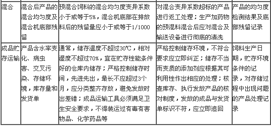 混合是預混料加工的核心,是保證預混料混合均勻性的關鍵所在,也是質量安全控制中最容易出問題的地方。預混料混合不均勻,就會導致部分飼料藥物或微量組分含量超標,應根據不同飼料產品對混合均勻度變異系數的要求及混合機的性能,對混合的時間進行設定,以達到預期的混合效果,避免混合不均勻或過度混合。
